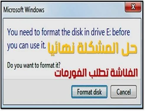 مشكلة الفلاشة تطلب الفورمات و الكارت ميموري تطلب الفورمات عند ادخالها في